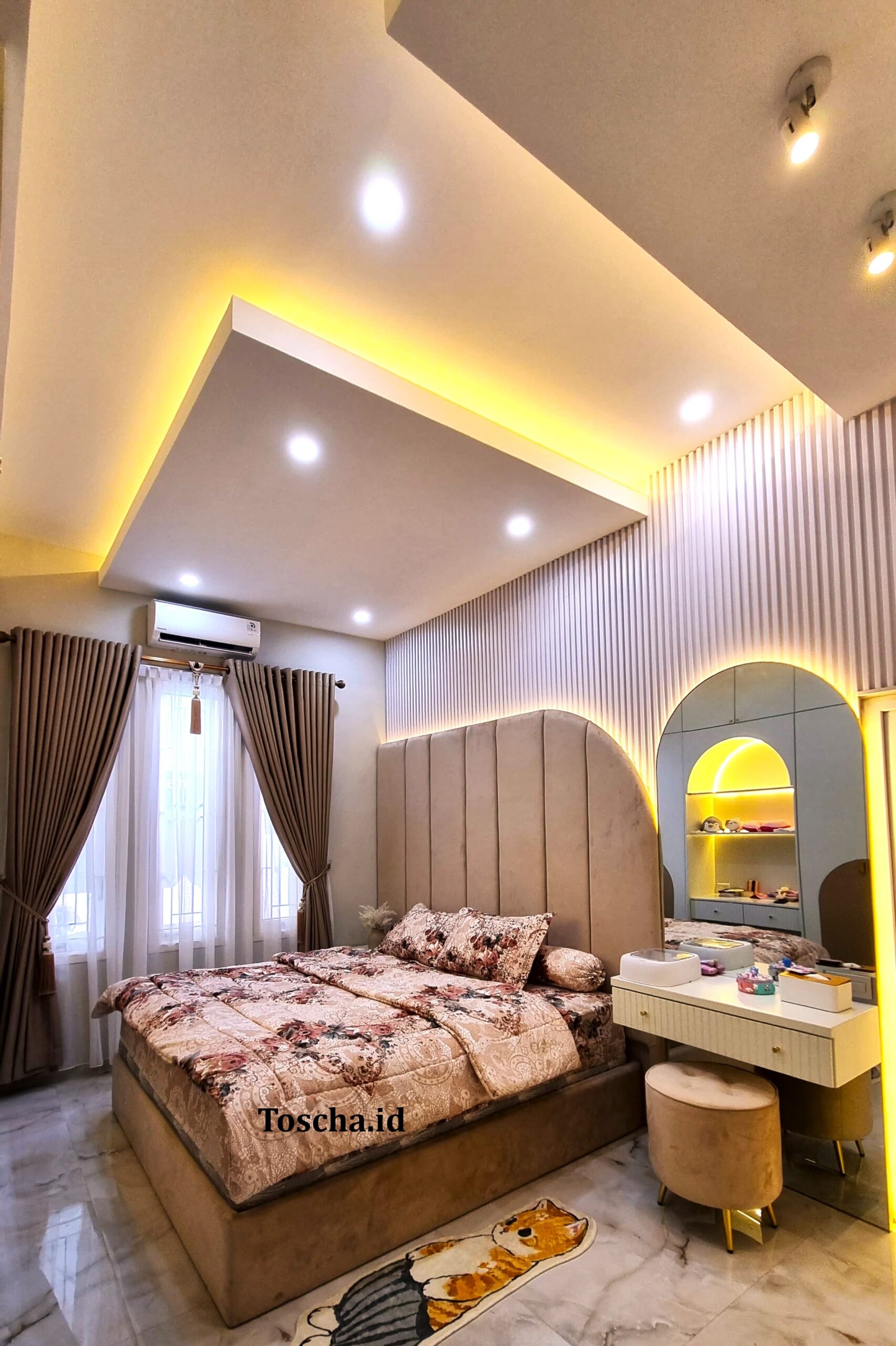 Project Kamar Anak Remaja kali ini merupakan kamar remaja Putri. dikerjakan oleh Tim TOSCHA, dari Plafond, lighting, Furniture, Gorden hingga pengecatan seisi