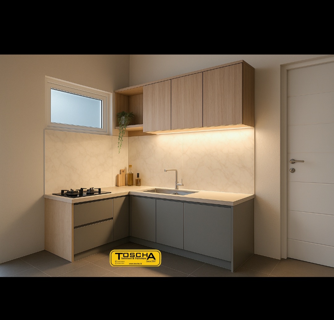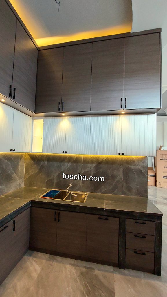 Kitchen Set konsep modern ini merupakan Produk Toscha yang di custom khusus untuk Client Kami Bapak Ridwan. Beliau baru saja merenovasi rumah yang baru saja