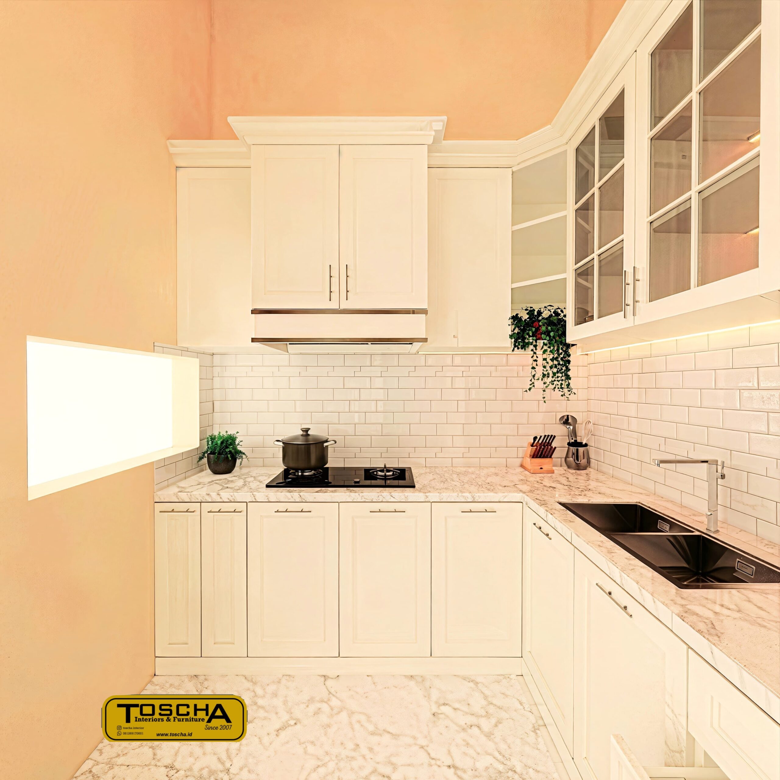 Area Yang Terbatas tidak menghalangi Keindahan dan harapan menghadirkan nuansa interior dapur yang bergaya Classic bak American Style. Seperti pada dapur