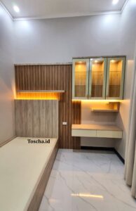 Kamar Anak Remaja yang mengakomodir beberapa kebutuhan, mulai meja belajar yang terintegrasi dengan cabinet gantung built ini dan ambalan multi fungsi. memanjakan imajinasi pemilik kamar untuk menempatkan berbagai koleksi dan hasil karya yang penuh kesan.