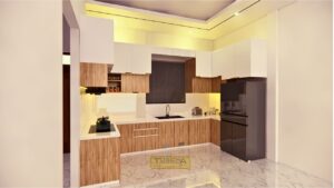 Kitchen set ini memadukan 2 warna yang sedang menjadi trend saat ini. Kesan alami dari HPL berserat kayu ini menghasilkan desain dengan dekorasi yang indah dan estetik. Meghadirkan Suasana alam yang asri kedalam dapur impian ini diharapkan mampu membawa suasana teduh dan nyaman bagi pemilik rumah disaat menikmati suasana memasak dan hidangan bersama keluarga tercinta mampu meninggalkan kesan yang positif bagi seluruh anggota keluarga.